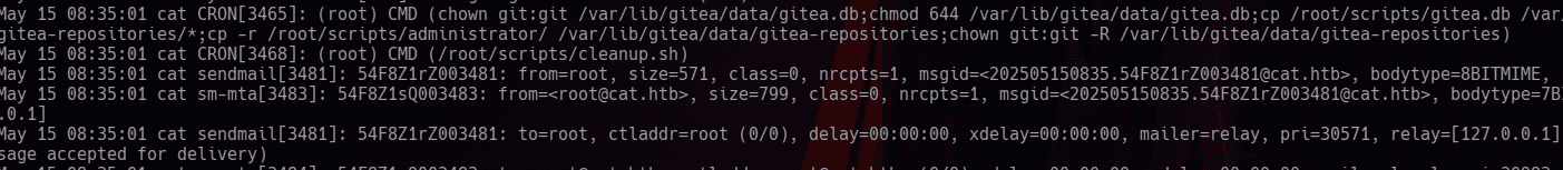root esta ejecutando un script de limpieza para un gitea (puede ser la escalada?) además de que esta enviando un email (es una tarea cron)