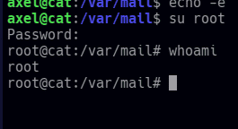 antes encontramos que root, estaba enviando email, así que iré a /var/mail
