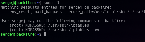 enumerando el sistema, vemos que tenemos la opcion de ejecutar iptables e iptables-save como root