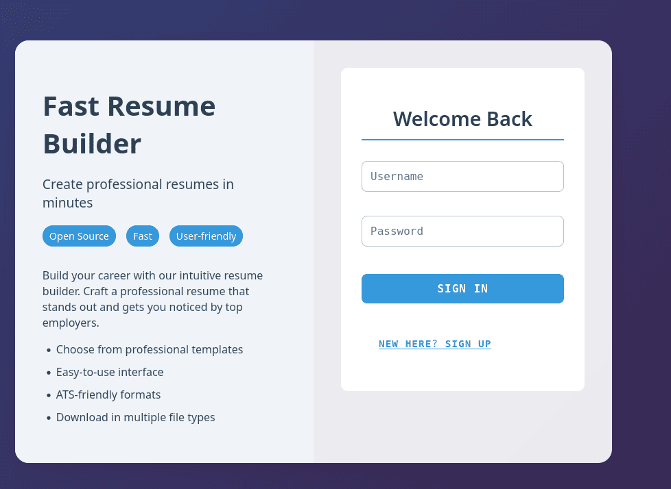 es una web para construir currículos y tenemos un panel de inicio de sessión y de registro