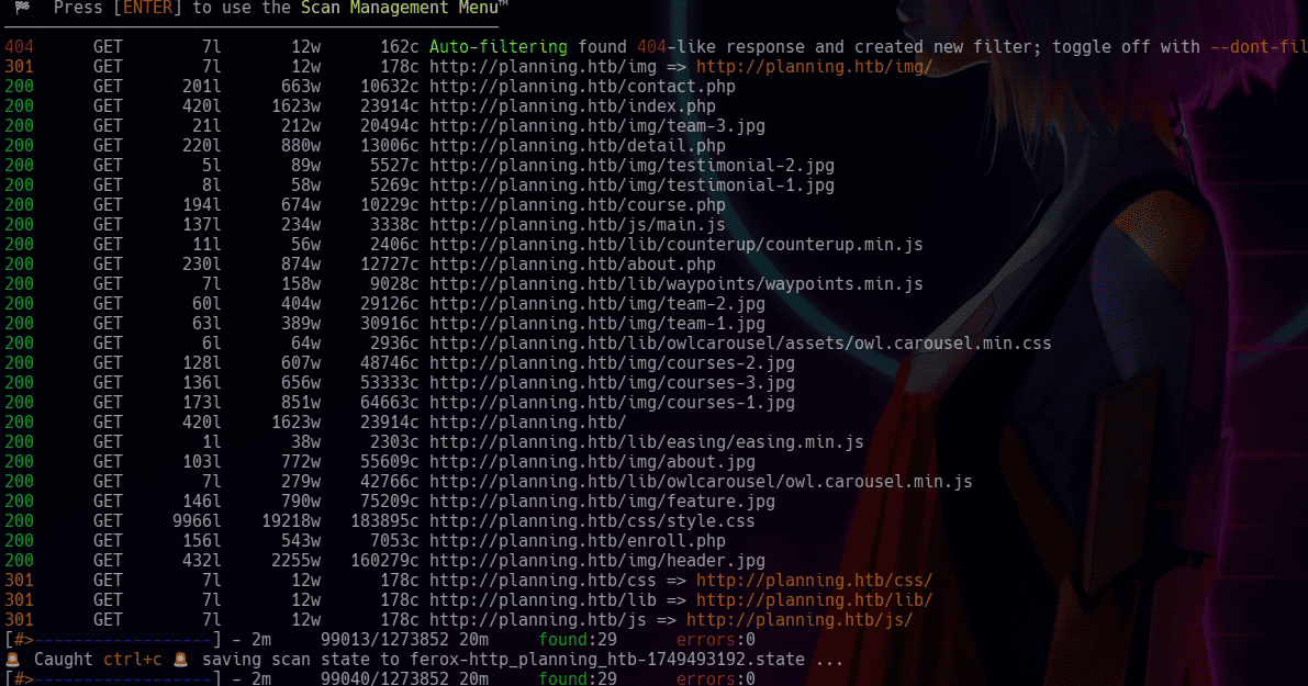 feroxbuster -u http://planning.htb -w /usr/share/seclists/Discovery/Web-Content/directory-list-2.3-big.txt -n -x php