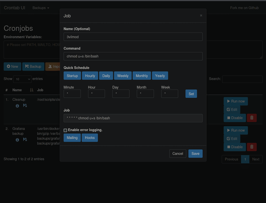 es una interface grafica para manipular, crear y desplegar tareas cron en el sistema! (vemos las tareas del json que hemos encontrado)