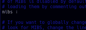 luego iremos al archivo /etc/snmp/snmp.conf y en la linea mibs : la comentaremos: