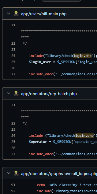 pero me pedia contrasena, supuse que eran las que tiene daloradius por defecto asi que intente varias mas, hice un poco de fuzing y no tenia resultados, asi que fui al github del proyecto y busque por “login.php” a ver si había algo y: